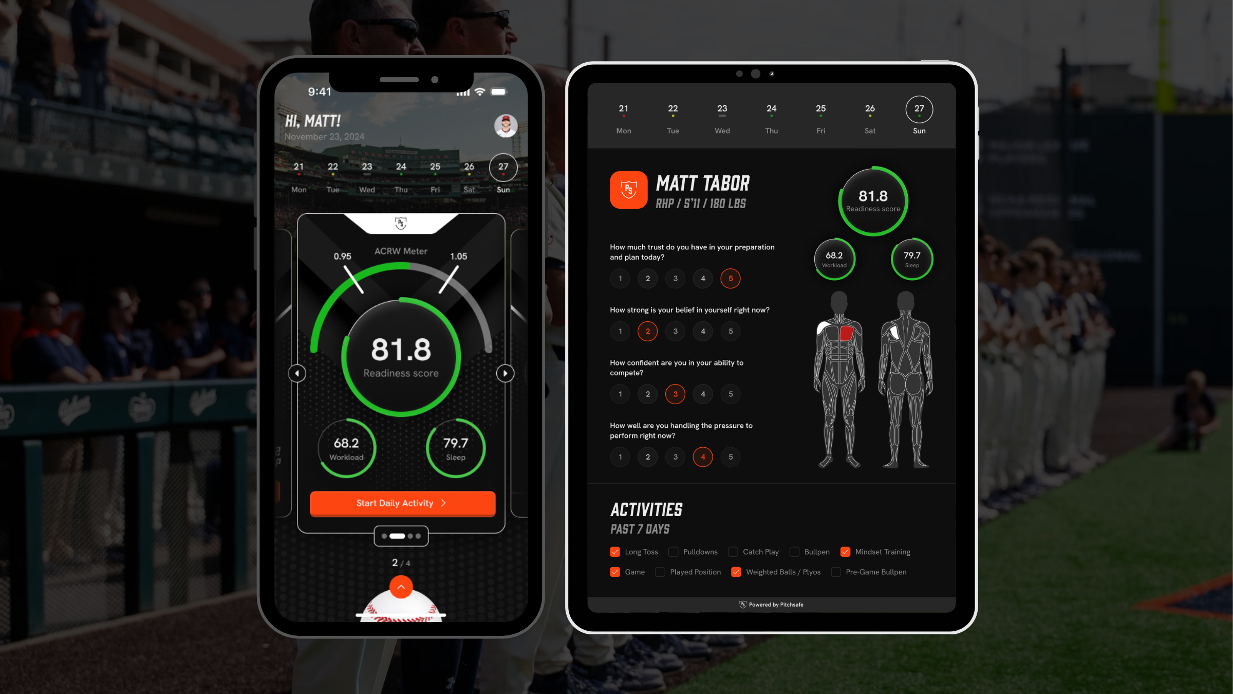 At Pitchsafe, we understand that your performance isn’t just about pitch counts and velocity readings. We take a caring, holistic look at his entire week—168 hours—to see where physical and mental demands might overlap. Whether it’s additional workouts, school responsibilities, or everyday stresses, these factors can build up and affect his arm health and overall energy levels.