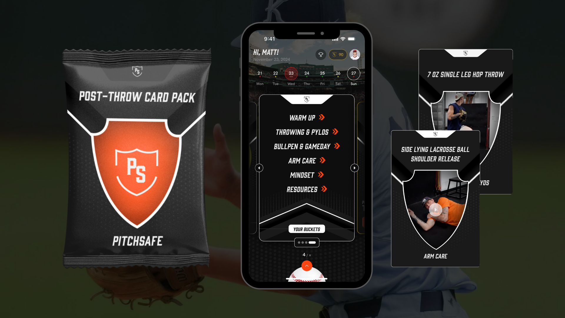 PitchSafe Card Packs send daily exercises tailored to your readiness, so you can build and save a routine that fits you.